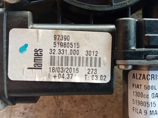 ALZACRISTALLO ELETTRICO POST. DX PER FIAT 500 L Serie (351_352) 51980515 (12>)