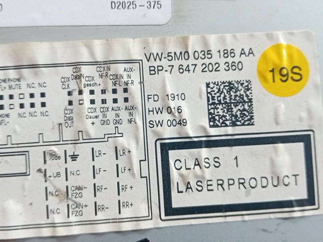 STEREO VOLKSWAGEN GOLF V PLUS 2010 5M0035186AA