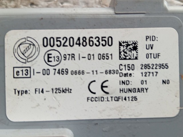 CENTRALINA BODY INTERNO AUTO FIAT PANDA 2017 1.2 BENZ. 00520486350