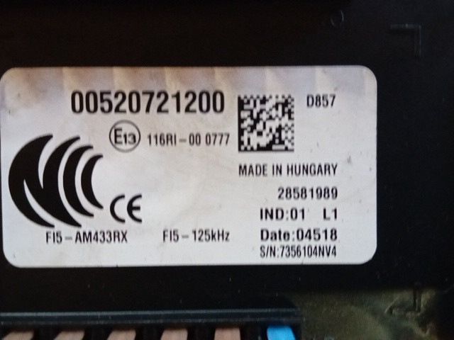 CENTRALINA BODY INTERNO AUTO FIAT TIPO 2018 1.6 T.D. 00520721200
