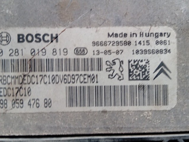 CENTRALINA MOTORE PER CITROEN Jumpy 3° Serie 0281019819 9h07 diesel 1560 (07>)